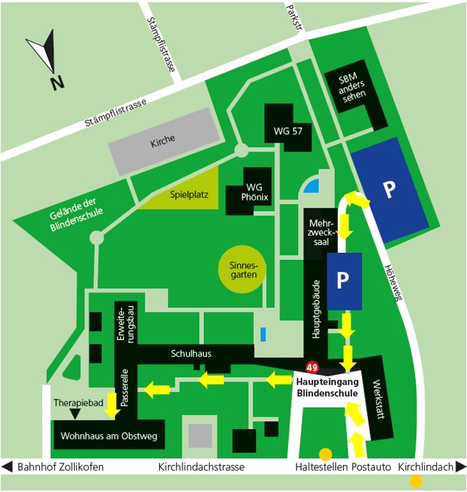 En bus - l'arrêt "Zollikofen Blindenschule" se trouve devant l'entrée principale